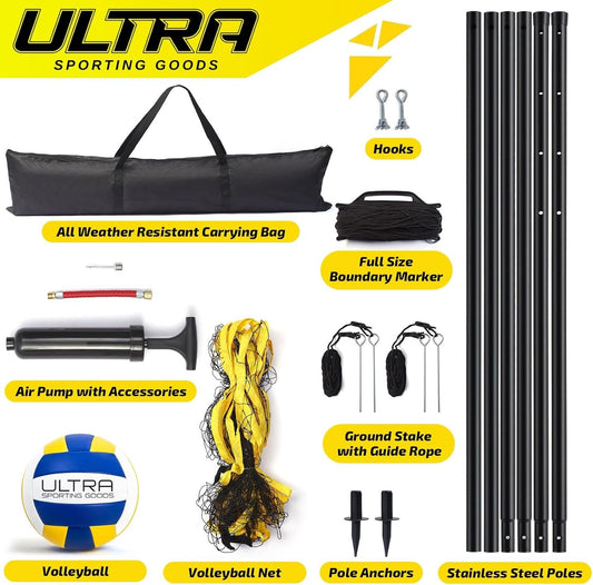 Volleyball Net, 12Ft/20Ft Portable Volleyball Net for Backyard - Adjustable Heig