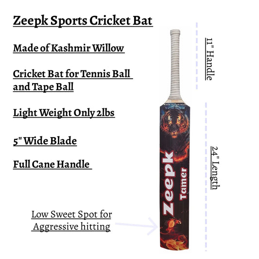 Cricket Bat Tamer Tennis Tape Ball 5" Inch Full Cane Long Handle Willow 2Lb Light Weight
